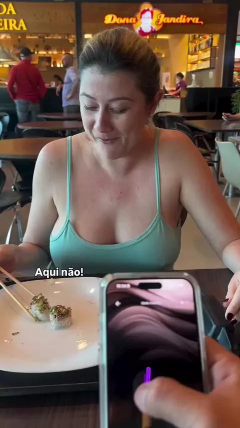 Ele com o brinquedo de cócegas de novo… e eu só querendo curtir meu sushi em paz!