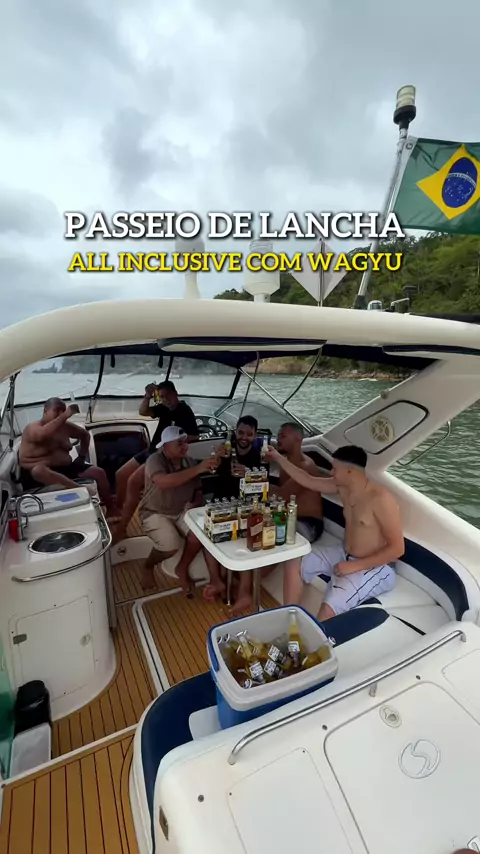 ROLÊ DE LANCHA ALL INCLUSIVE NO BRASIL 🇧🇷😱 Descobrimos a lancha que você come a carne mais cara do mundo e ainda toma cerveja o dia todo 🍺😍 Tudo isso com o @navegandolitoral 🛥️ Que experiência surreal! Os pacotes saem a partir de apenas R$5.000 para 7 pessoas, e vale muito a pena! Curtiu? Já manda pra quem vai com você nesse passeio