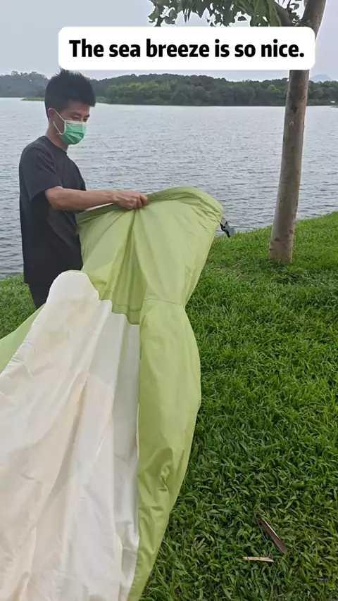 Sleeping on the grass by the lake was awesome!#inflatablebed #Sunbathing #enjoy #air