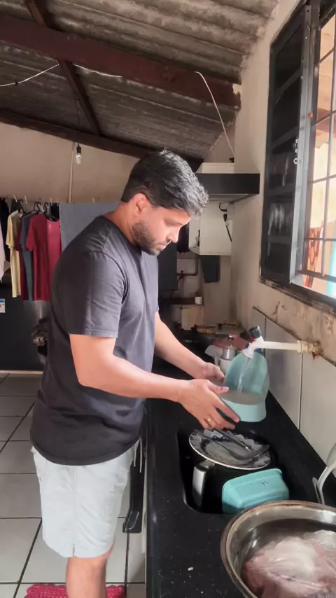 Fazendo almoço. Meu amor, você gosta de costela de porco?
