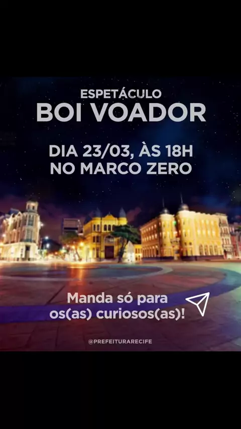 Simbora olhar pra cima e ver o boi voar neste domingo (23), em mais uma edição do espetáculo do Boi Voador. A peça relembra a história da inauguração da Ponte Maurício de Nassau, a primeira grande ponte do Brasil. Um acontecimento na cidade, um grande babado em pleno século 17🤭, que é contado numa montagem muito massa, cheia de surpresas e resenhas. 😎 Vai ser no Marco Zero, a partir das 18h, aberto ao público. Tu vens com mais quem?!