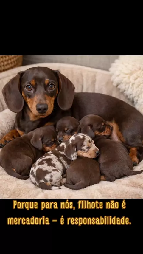 🐾 ANTES DE COMPRAR SEU FILHOTE DACHSHUND 🐾 Pesquise. Pesquise muito. A vida que você leva para casa começa antes da escolha do filhote. Nem todo vendedor é criador. Muitos são atravessadores — e isso custa caro para o cão. ✔️ Um criador responsável: • Permite visitas • Mostra os pais do filhote • Entrega o filhote após 60 dias • Fornece cartão de vacinas com anotações também sobre vermifugação. • Oferece suporte mesmo após a venda ❌ Um atravessador: • Não mostra o local • Evita perguntas