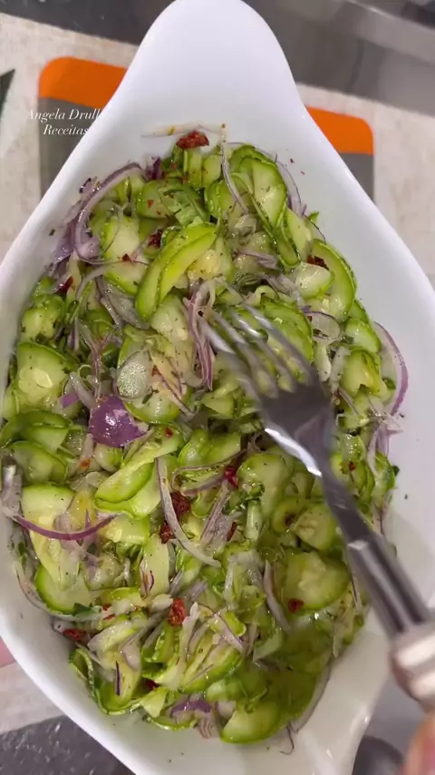 SALADA DE ABOBRINHA CRUA INGREDIENTES: -3 abobrinhas médias (quantidade à gosto) -1 cebola -sal à gosto -azeite de oliva ou óleo à gosto -vinagre ou limão à gosto -temperos à gosto usei: pimenta do reino, salsinha, cebolinha, orégano e tomate desidratado #sejareporterdokwaisports #salada #DesafioDoTorcedor #saudavel #nutricao