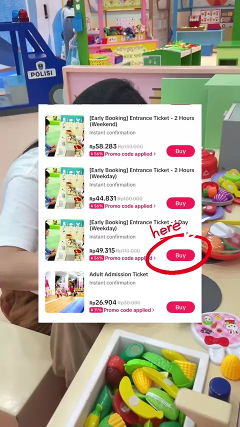 Main puas, dompet aman! Kapan lagi main di mall semurah ini ? 45k untuk 2 jam atau 49K untuk seharian. Harga untuk 1 anak + 1 pendamping Loh ! Murah banget 🥹🥹 Terus kalau Tambah 1 pendamping lagi cuma Rp 20k Seru seruan bareng anak tanpa bikin kantong bolong! Yukk Buruan beli tiketnya sekarang 😍😍😍 #PlaygroundSeru #Kidzoona #AnakSenangOrtuTenang #MurahBanget #FamilyFun