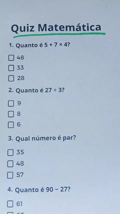 Quiz de Matemática #quiz #matematica #perguntaserespostas #aprender #Escola