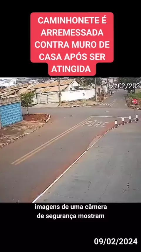 EM GOIÁS UMA CAMINHONETE É ARREMESSADA CONTRA MURO DE CASA fonte/G1 #ultimasnoticias #noticiasfamilia #acidente #cruzamento #news