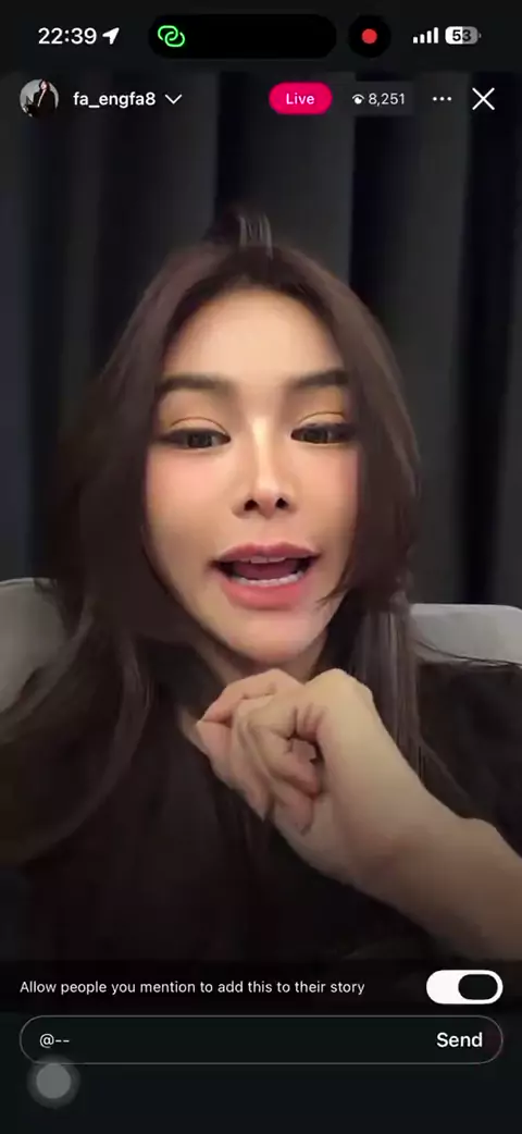 Deste ângulo dá para ver que tem muitos fãs esperando pelos artistas. Quando foi a vez da P'Eng, os fãs gritaram muito pedindo para ela fazer a pose de 'beijinho de gatinho'. Assim que ela fez, a gritaria foi total! Tão fofa! Ela é uma artista que mima demais os fãs. ☺️ #engfawaraha👑🐶🌻🇹🇭 #เอนจอยจูน #กลับบราซิลไปเถอะที่รักของฉ