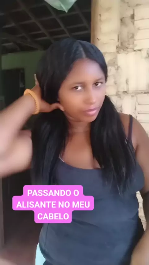 passando o alisante no meu cabelo para ficar liso