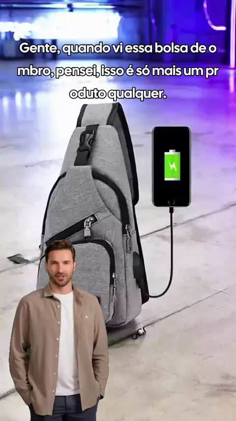 A bolsa que vai mudar sua rotina: descubra agora! #BolsaAntiRoubo #EstiloEPraticidade #CarregadorUSB #ModaMasculina #AcessóriosInteligentes