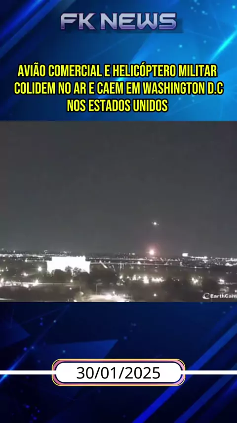 Avião comercial e helicóptero Militar colidem no ar e caem em Washington D.C nos Estados Unidos 😱. #ultimasnoticias #KWAINOTICIAS #kwainoticia #Avião #Helicóptero