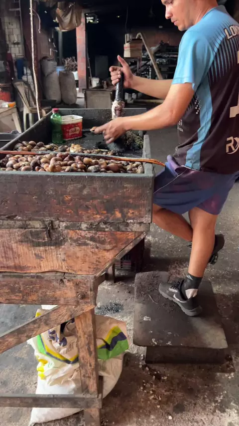 Assim o movimento pra abrir a castanha do caju