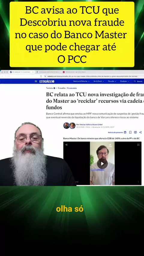 BC avisa ao TCU que descobriu nova fraude no caso banco Master que pode chegar até o PCC