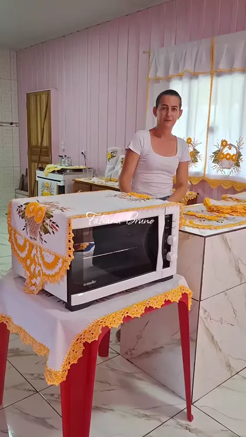 mais um jogo de cozinha para uma cliente dos Estados Unidos 🌼🌻💛 69 984894337 para encomendas e orçamentos. #premiokwai2025 #crochê🧶 #crochê🧶 #maisviews #KwaiChef2025
