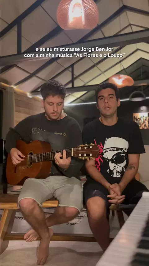 E se eu misturasse @jorgebenjoroficial com ''As Flores e o Louco''? ❤️ Aproveitando que to aqui no estúdio @nossatoca gravando um álbum novo pra vocês, e criando uns conteúdos! 🥰 O que acharam dessa versão família? 🎸 @bernardostertz