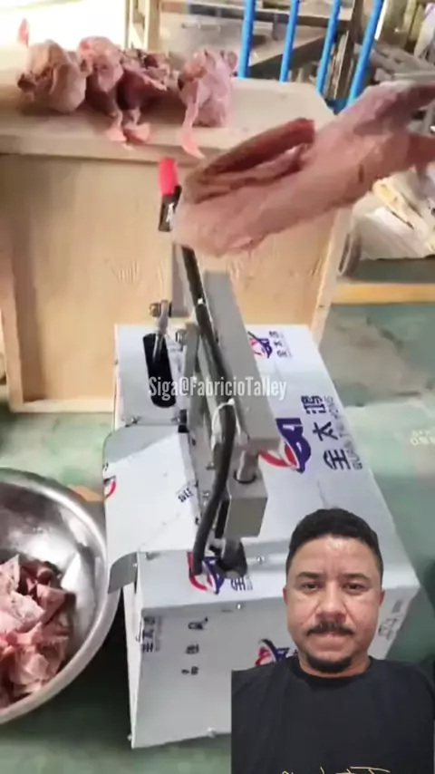 Na China, muitos açougues trabalham com esse tipo de cortador, substituindo a máquina de serra.