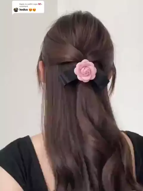 Replying to @outfit inspo 🎀 Effortlessly beautiful half-up hairstyle tutorial—super easy, perfect for beginners 😉🖤#halfuphalfdown#hairstyle#hairtutorial#hairtok#easyhairstyles##
