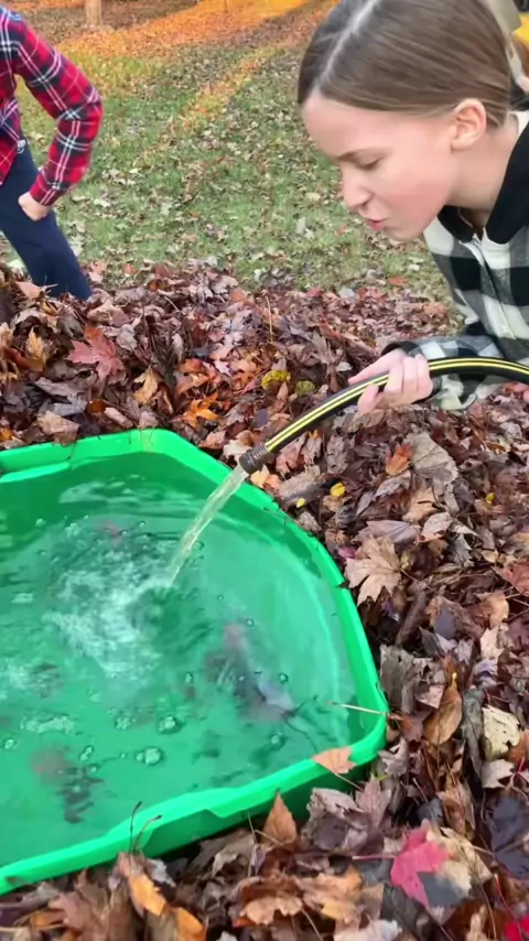 Hilarious Leaf Pile Prank on Dad 😂##fall#prank#dad#daughter#family#autumn#leaves#kids