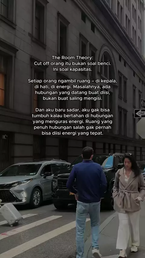 Aku nyebut ini The Room Theory. Kapasitas kita terbatas. Disitu aku baru sadar.. sebelumnya aku stuck bukan karena kurang usaha, tapi karena terlalu lama mempertahankan energi lama.#relationships#selfawareness#NgobrolBarengJC