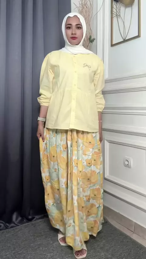 Warna soft yellow seger juga yaaa ternyata #rokbunga #rokkoreanstyle #outfitideas