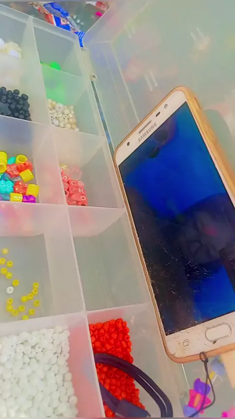 Fazendo pulseira e conversando com a irmã dela por chamada de vídeo