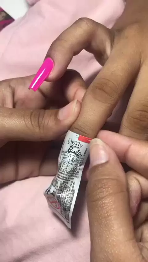 Postiça Barbie Gril com adesivo de Chiclete 💅😍 #Postiça #posticaluxo #Unhas #unhas🥰 #PostiçaRealista