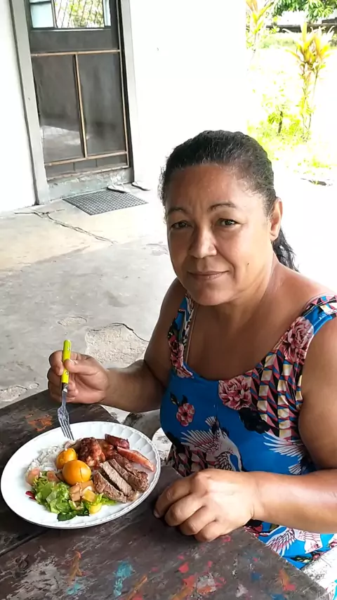 Saboreando um arroz com pequi, saladinha e aquele churrasco feito pela minha nora e filho. #arrozcompequi #salada #churrasco #pequi #almoço