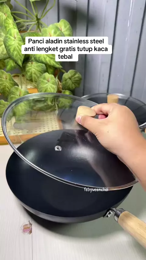Wajan stainless hitam honey comb dengan tutup kaca anti panas anti lengket #wajan #wajanantilengket #wajanmurah #wajanviral #wajanstainless