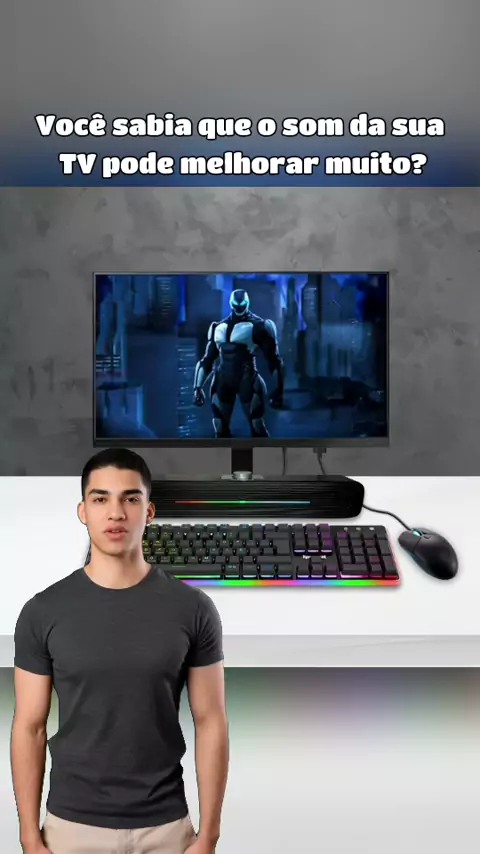 Transforme o Som da Sua TV com a Mini Soundbar! #MiniSoundbar #SomDeQualidade #Promoção #IluminaçãoRGB #ExperiênciaSonora