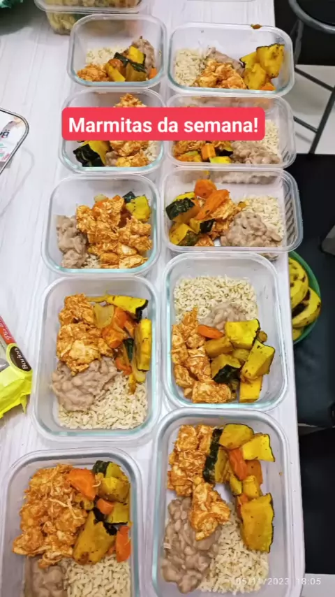 Comida boa pra começar a semana? Alguém mais faz? Nessa tem arroz, frango ao molho, legumes, feijão e aveia. Bem equilibrada e você não passa fome! #treinofeminino💅🏻 #marmitasdasemana #gym #personaltrainer #corpao