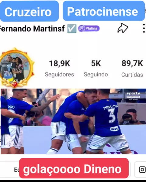 Criador de conteúdo, esporte,Cruzeiro Streamer live de crescimento ajudando contas pequena Instagram @fernando.martinsf YouTube Fernando Martinsf tem uma letra F no final pra ficar mais fácil