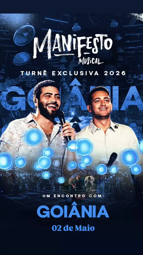O Manifesto Musical agora é uma Turnê, que acontece exclusivamente em 2026. 💙 Goiânia vai se encontrar com Henrique e Juliano, no dia 02/05. E queremos você nesse momento inesquecível! ✨ AGUARDEM! 🎟️ EM BREVE início das vendas e mais informações! 💙 Manifesto Musical Henrique & Juliano Turnê Exclusiva 2026 #HenriqueeJuliano #ManifestoMusical #Goiania