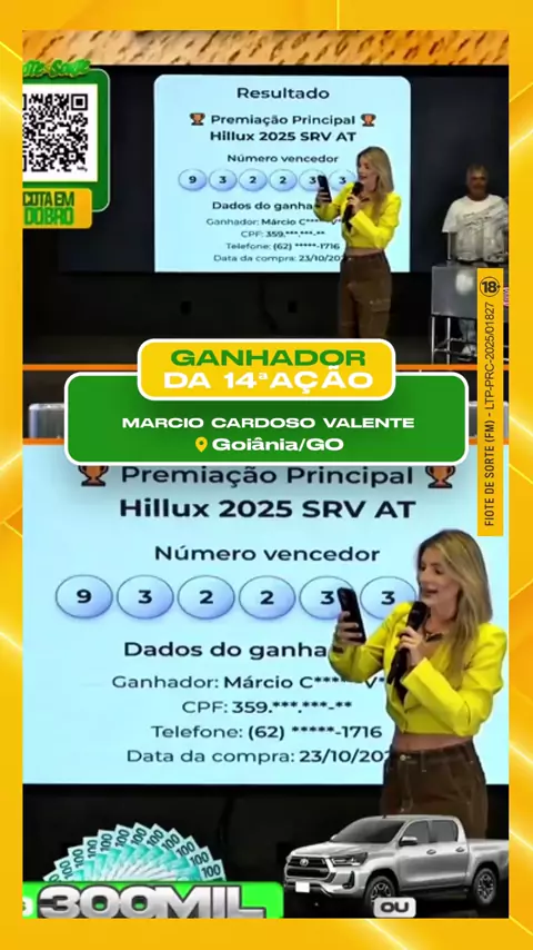 TEMOS UM NOVO GANHADOR! 🤩 O sortudo da vez foi o Márcio Cardoso Valente, de Goiânia - GO. Ele levou os R$ 300 mil da 14ª ação e agora está sorrindo a toa. 🤑 Com o Fiote é assim: quem acredita, leva prêmio pra casa! 🫰🏼 E você que ficou ganhou, fica ligado porque já tem ação nova rolando. ➡ Clica no link da bio e faça sua fezinha porque na próxima semana o ganhador pode ser você. #FioteDeSorte #Ganhador #300mil #BETAPPNOBRASIL #libertadores