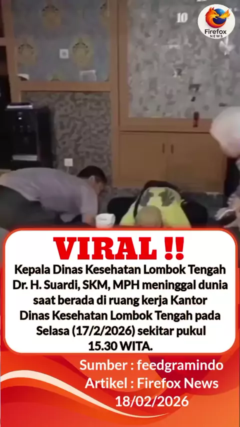 Kepala Dinas Kesehatan Lombok Tengah Dr. H. Suardi, SKM, MPH meninggal dunia saat berada di ruang kerja Kantor Dinas Kesehatan Lombok Tengah pada Selasa (17/2/2026) sekitar pukul 15.30 WITA. #DUKA #lombok #indonesia #beritaviral #snackvideo