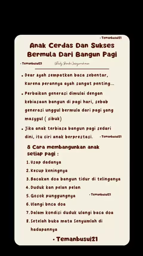 Anak cerdas dan sukses bermula dari bangun pagi... #temanbusui21 #anakcerdas #anaksukses #tips #parenthing #parenthinganak #peranayah #tipsanakcerdas #edukasi #edukasianak