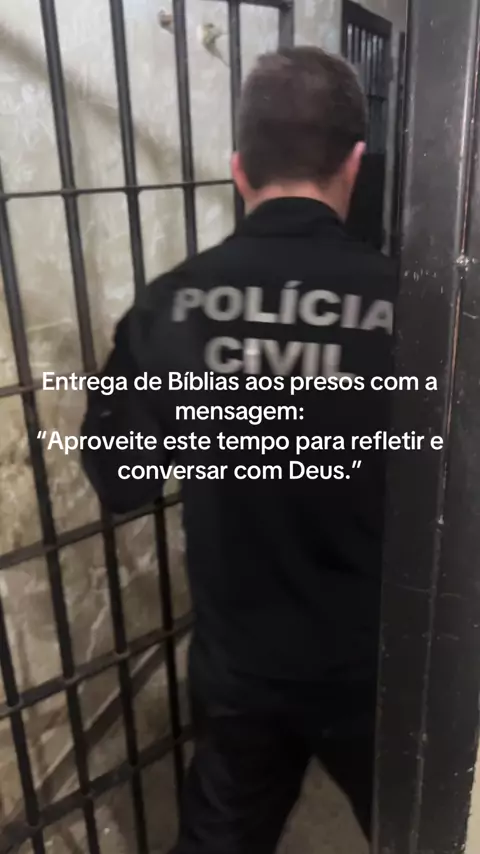 Entrega de Bíblias aos presos com a mensagem: “Aproveite este tempo para refletir e conversar com Deus.”