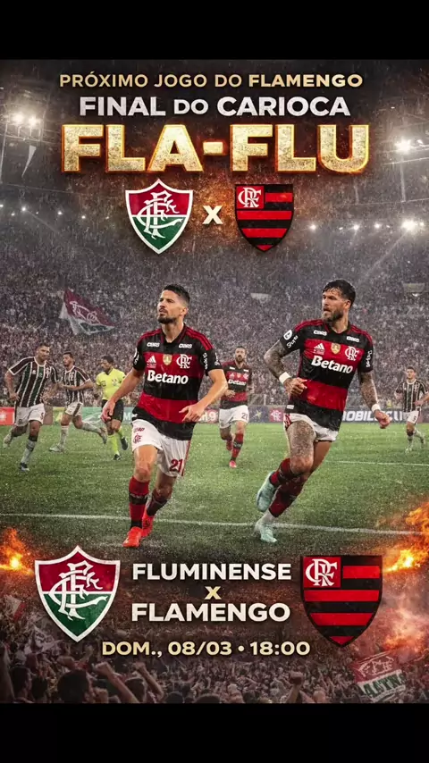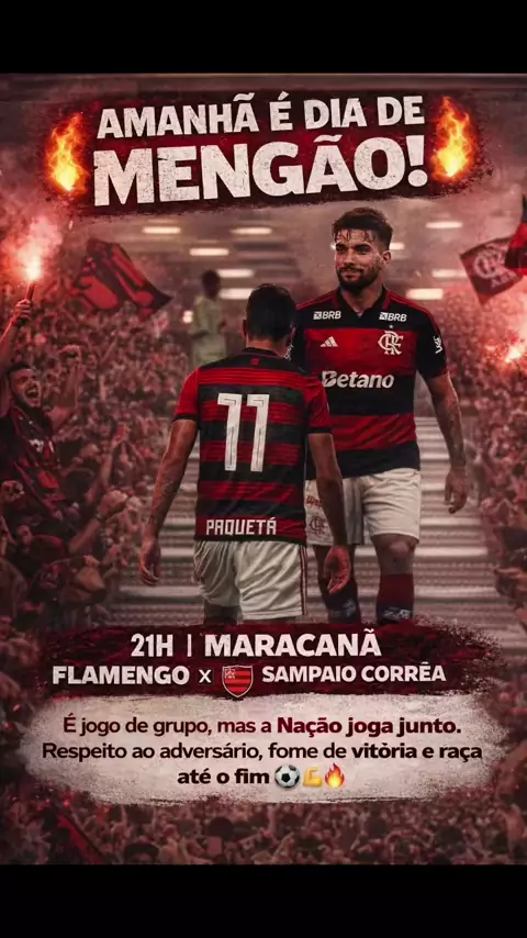 🔥 Clássico é guerra! 🔥 É dia de vestir o Manto, lotar o coração de raça e ir pra cima no Carioca. O Mengão entra em campo em busca de mais uma vitória, porque aqui é Flamengo e a gente joga pra ganhar sempre! ❤️🖤 #Mengão #Flamengo #Carioca2026 #ClássicoDosMilhões #PraCimaDeles