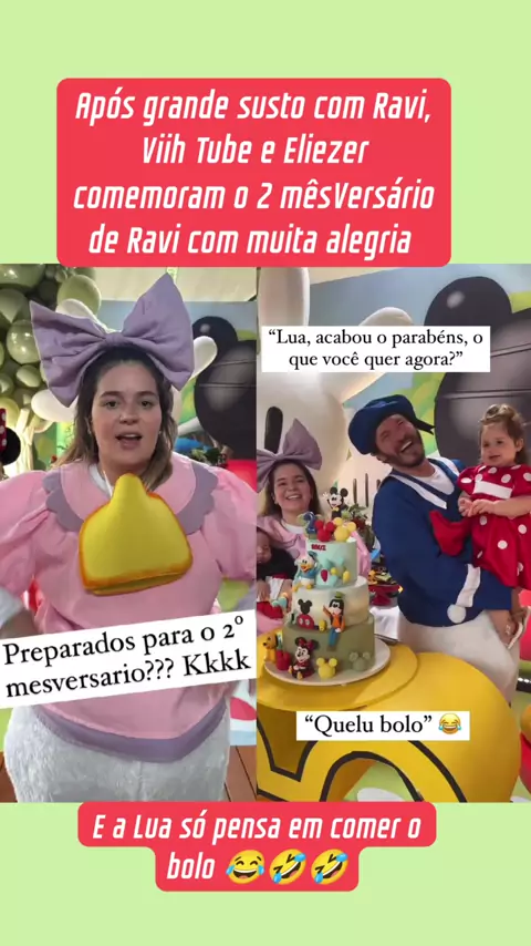 #viralizaViih Tube e Eliezer têm motivos de sobra para comemorar! Referência quando o assunto é mesversário, o casal organizou o primeiro festão após a hospitalização de Ravi neste sábado, (11/1). Com o tema “Casa do Mickey Mouse”, a comemoração dos dois meses do pequeno contou com decoração, fantasias e tudo que a família tem direito! #ViihTube #Fofoca #fofocando #entretenimento Fonte: Viih Tube 12/01/2025