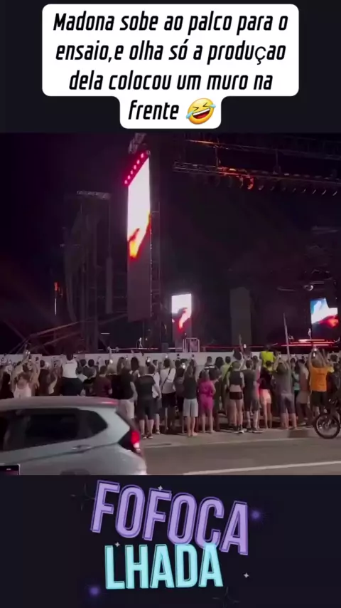 Madona sobe ao palco para o ensaio,e olha só a produçao dela colocou um muro na frente 🤣#madonnanobrasil