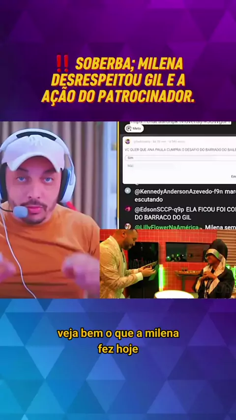 Milena desrespeito Gil e a ação do patrocinador. Fonte Internet #bbb26 #fofoca #BomPraKWAI