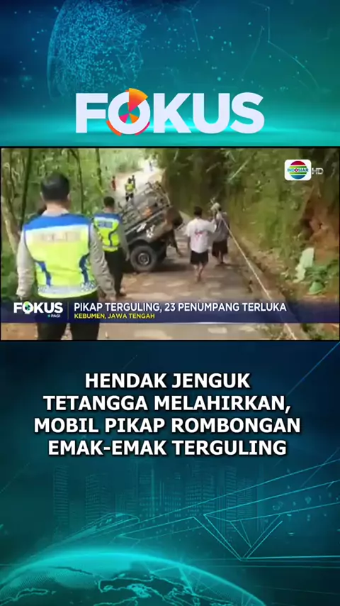 Hendak menjenguk tetangga melahirkan, mobil pikap yang membawa rombongan emak emak gagal menanjak dan terguling. Tiga penumpang tewas, dan 23 korban lainnya terluka. #newsindosiar #fokus #kebumen #kebumenviral