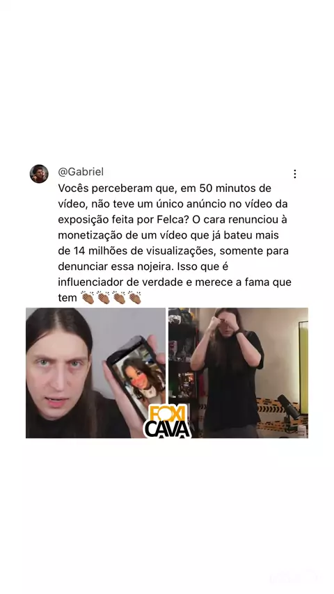 Internauta destaca que, em 50 minutos de vídeo, Felca não exibiu um único anúncio, abrindo mão da monetização