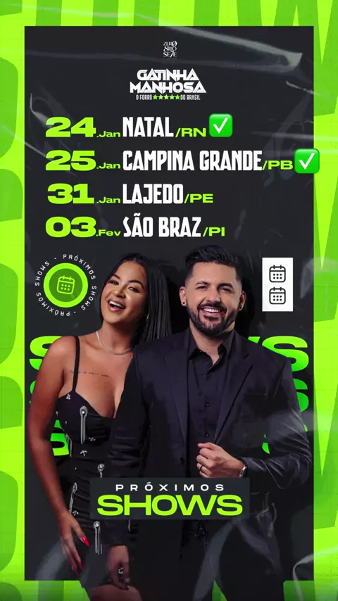 📝 Agenda Semanal Da Gatinha Manhosa #AgendaJaneiro2026 #GatinhaManhosa #OForróCincoEstrelas #CarnaKwai