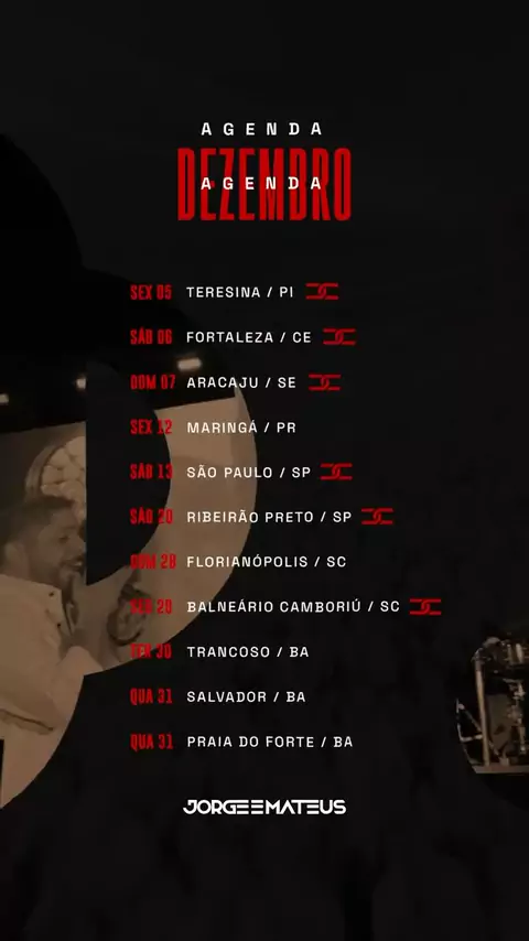 🗓️ Agenda Dezembro 2025 Do Jorge & Mateus #AgendaDezembro2025 #JorgeEMateus #Sertanejo #sejareporterdokwaisports