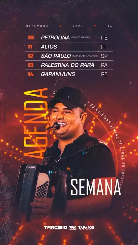 🗓️ Próximos Shows do Tarcísio Do Acordeon #AgendaDezembro2025 #TarcisioDoAcordeon #SaiDoMêi #RanchodoMaia