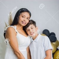 Mãe e filho Thales e Francisca, fazendo vídeos do dia a dia