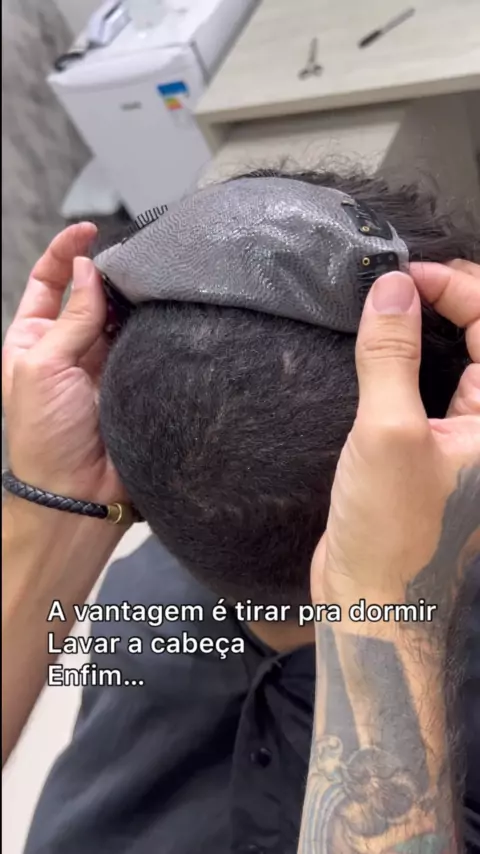 Prótese de tiktak para quem não quer raspar #hair #hairsystem #barber #barbershop #protesecapilar