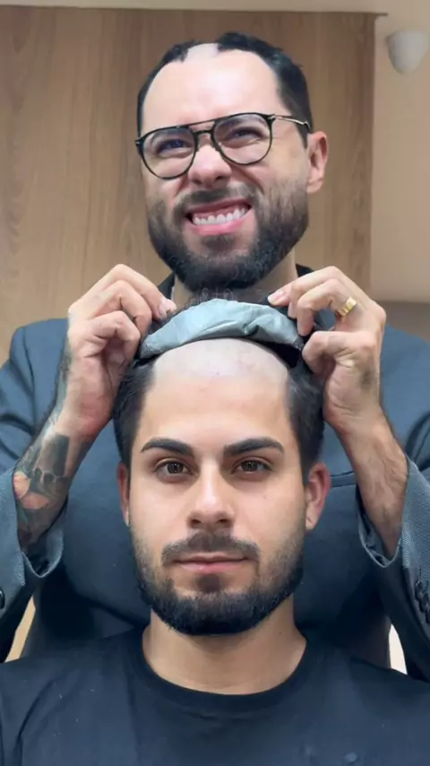 Transformação em dobro! Nosso artista @matheusbarber_protesecapilar entrou na trend e mostrou o poder da prótese capilar: um segundo você está careca, no outro cheio de estilo e autoestima lá em cima. 🔥 🔥 🔥 Aqui não é mágica, é arte e técnica! #hairsystem #protesecapilar #barber #franciscoprotesecapilar #calvice