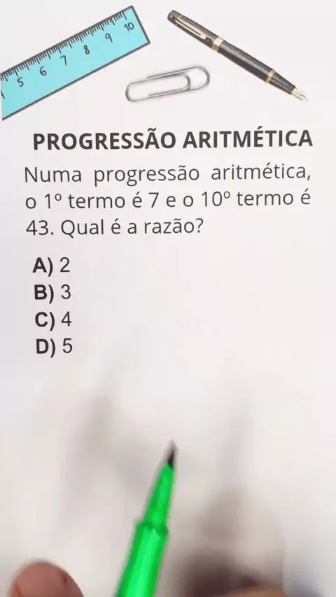 Numa progressão aritmética o primeiro termo é 7 e o décimo termo é 43. Qual é a razão? #matematica #AULA #educação #aprender