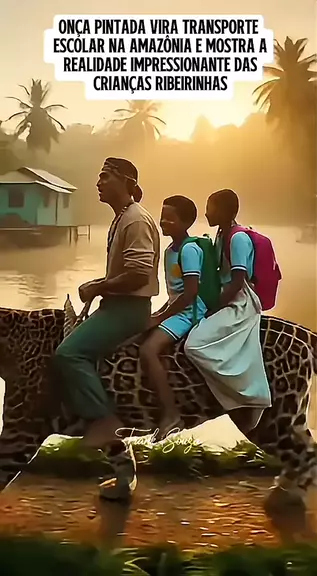 Onça pintada vira transporte escolar na Amazônia e mostra a realidade impressionante das crianças ribeirinhas. #inteligenciaartificial #ia #sora #maisviews #viraliza