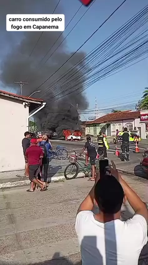 carro consumido pelo fogo em Capanema
